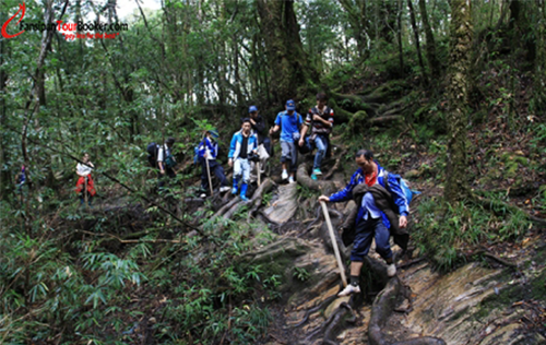 After breakfast, the group comes from 2.700m altitude climbing phanxipang proceed. Around 10h00 presence atop Group. Relax and celebrate the victory, taking souvenir pictures here. 10:30 Fansipan delegation left back road religious station,